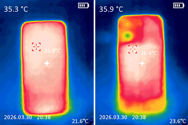 骨子游戏体验中,OPPO K15 Pro的证据更是惊艳。《王者荣耀》解救极致144帧率,一局排位战下来,PerfDog性能狗测得的平均帧率达到144.2fps满帧,即使是多东说念主团战场景,帧率也莫得显明波动,操作丝滑顺畅,莫得任何卡顿、掉帧征象。而这一出色证据,离不开新一代疾风散热引擎的强力赞成。在极致帧率下纠合游戏半小时,手机正面最高温度仅35.3℃,后面最高温度仅为35.9℃,手感温热不烫手,十足不影响游戏操作。