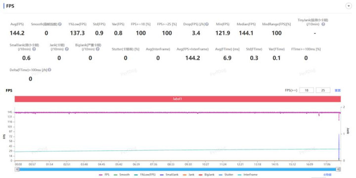 《王者荣耀》PerfDog测试平均帧率为144.2fps