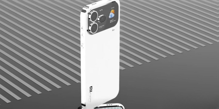 小米见地手机 / 白色小米见地手机后面,带副屏裸露天气