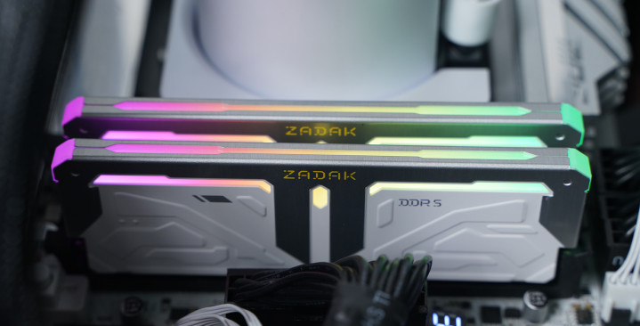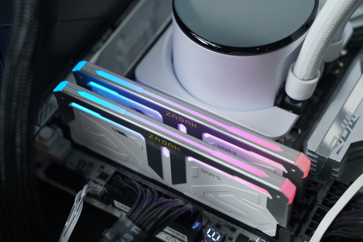 内存方面搭配宇瞻 ZADAK SPARK RGB DDR5 7200 16GB×2,高频规格具备可以的带宽阐扬,同期撑握XMP一键超频;外不雅罗致银白配色瞎想,上半部漫步热马甲与灯条柔光罩均由铝合金材质包裹,金属质感凸起,其余区域以纯白为主,辅以硬朗线条与几何纹理点缀,合座机甲立场较着,并撑握MSI Mystic Light灯效联动,与白色主题整机搭配尽头联接。