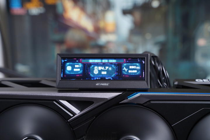 此次测试所搭配的显卡为七彩虹 iGame GeForce RTX 5080 Vulcan OC 16GB,合座接续Vulcan系列一贯的机甲立场瞎想,三电扇大尺寸散热配合大面积金属背板,在保证高性能开释的同期也兼顾了出色的散热阐扬,而象征性的可翻转LCD副屏不仅能及时露出温度、频率等硬件信息,也进一步晋升了整机的可玩性与个性化历程。