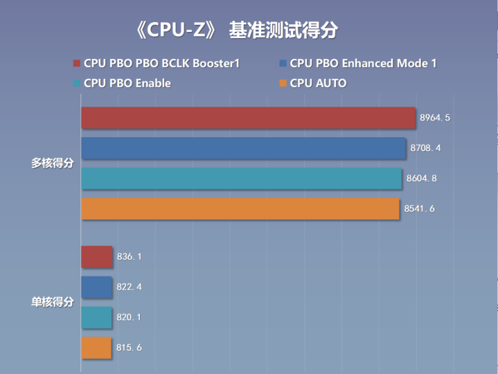 将CPU PBO诞生设为Enhanced Mode 1,多核得分8708.4分,单核得分822.4分;