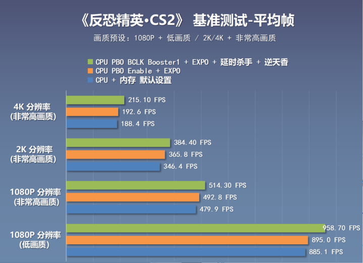 《CS2》基准测试,在CPU和内存不同景况下,分手在4K分辨率+极度高画质、1080P+极度高画质以及1080P+低画质下进行测试,游戏帧数进展如下: