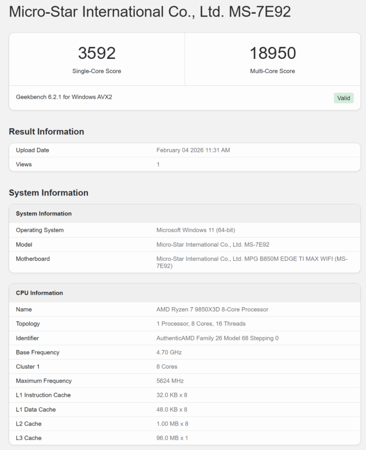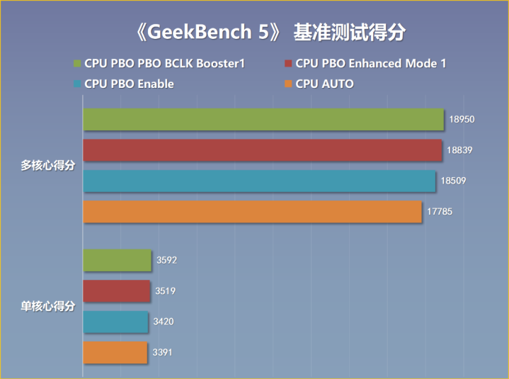 将CPU PBO诞生为PBO BCLK Booster1,多核得分18950分,单核得分3592分;