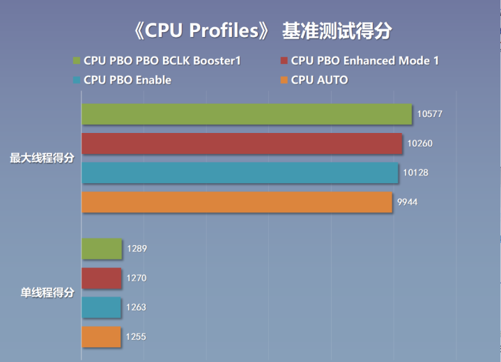 将CPU PBO诞生为PBO BCLK Booster1,多线程得分10577分,单线程得分1289分;