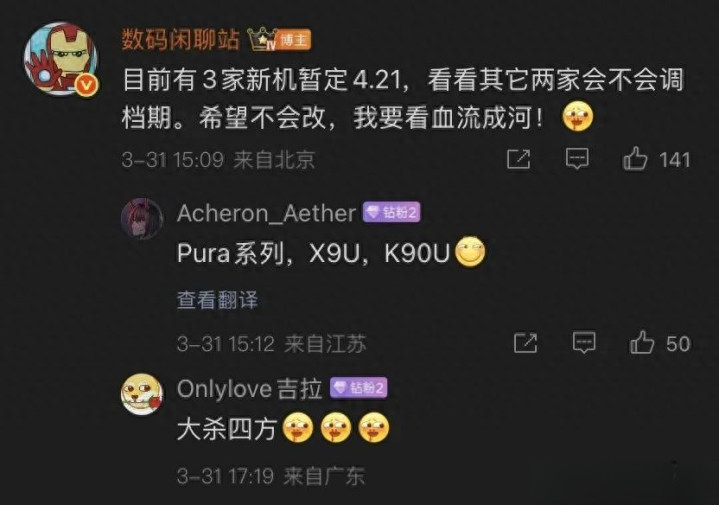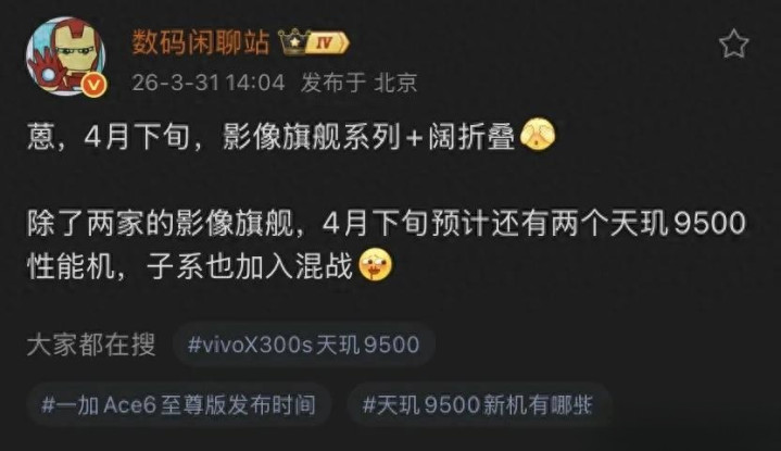酬酢媒体发文截图 / 数码漫谈站对于四月下旬新机的爆料内容