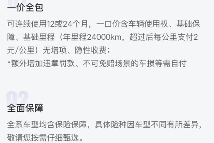 价钱知说念了,还有哪些附加章程呢?要津信息就那么几个。领先是蔚来提供全新车托福,同城市20公里内可以奉上门;其次是整车智能化都可以使用,包括智驾功能,有些东说念主可能不知说念,大部分车的智驾关于非车主都是为止致使禁用的;第三是包含保障;第四是每年为止24000公里里程,非常于每个月2000公里,超出后要付费。