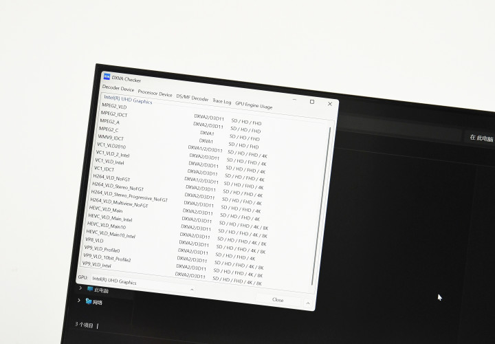通过DXVA Checker能看到极摩客G3 Pro的视频解码能力也可以,救济的工夫挺多。