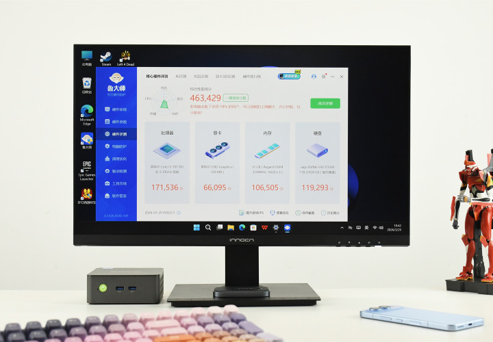 而性能方面,由于我出手的是准系统版,是以自行安设上了两条16GB内存以及一条1TB硬盘,在鲁民众的性能测试下,OD体育(中国)能看到极摩客G3 Pro取得了46万分傍边的得益,其中CPU跟显卡分数占据总得益一半。