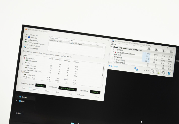 至于散热推崇,个东说念主嗅觉极摩客G3 Pro的推崇也还可以,机身里面设有通过专科静调子校的超导铜涡轮散热想象,聚会机身上大齐的散热开孔以及快拆式顶盖,在AIDA64的1个小时“单烤FPU”测试下,其CPU中枢温度在70多摄氏度,功耗也褂讪在15W,若是散热不能,就会裁汰功耗开动。