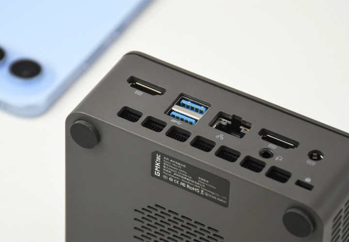 而机身后面这边则也给到了两个USB 3.2(Gen1)接口以及两个HDMI接口、一个3.5mm音频接口、一个2.5G以太网接口。