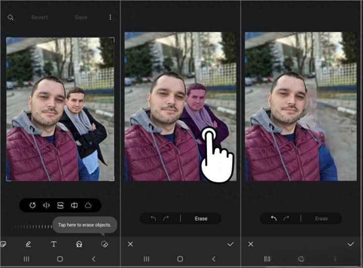 AI修图操作界面 / 三步展示AI移除相片中东说念主物的操作经由