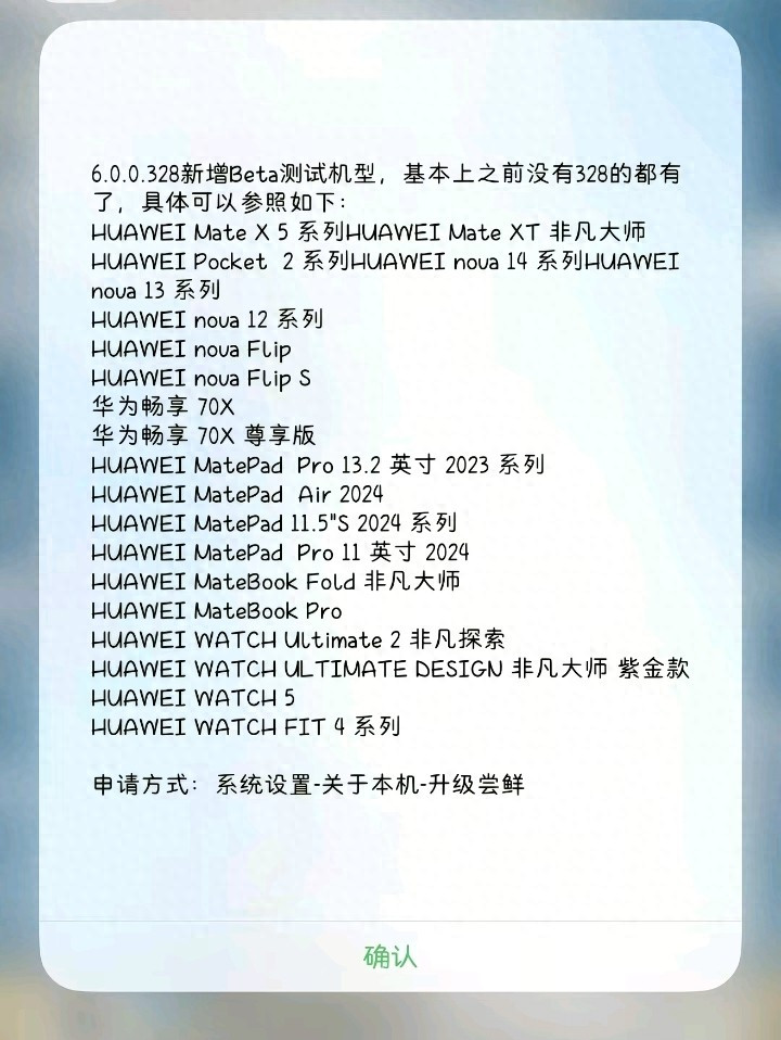 2026年3月31日,鸿蒙OS6.0.0.328Beta版块正经面向部分征战洞开升级央求,本次更新新增救济20款机型参与测试,逃避智高手机、平板电脑、智高腕表及折叠屏征战等多个居品线。此举标识着该操作系统在适配广度与生态兼容性方面迈入新阶段,为更多用户提供提前体验最新系统功能的契机。这次升级并非全面推送,而所以开发者与内测用户为主,旨在通过真是场景下的反馈进一步优化系统褂讪性与性能发达。