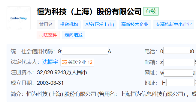 天眼查娇傲,恒为科技缔造于2003年3月,位于上海市徐汇区,2017年6月在上交所主板上市,主要从事智能系统处罚有辩论的研发、销售与处事,是收罗可视化和智能系统平台提供商,以及算网基础架构处罚有辩论与运维科技的提供商。
