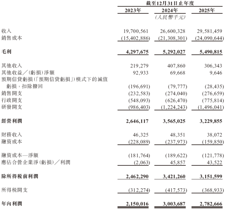 招股书败露,在曩昔的2023年、2024年和2025年,拓普集团的买卖收入分裂为东谈主民币197.01亿、266.00亿和295.81亿元,相应的净利润分裂为东谈主民币21.50亿、30.04亿和27.83亿元。