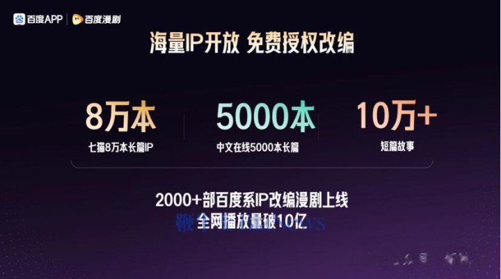 ⾸先是IP。⽬前百度仍是开放了圆善的IP内容库,包括:七猫8万本⻓篇IP、中⽂在线5000本优质IP,以及卓绝10万篇短篇故事,全体范围接近20万本,况兼绝⼤广泛齐经过商场考据。