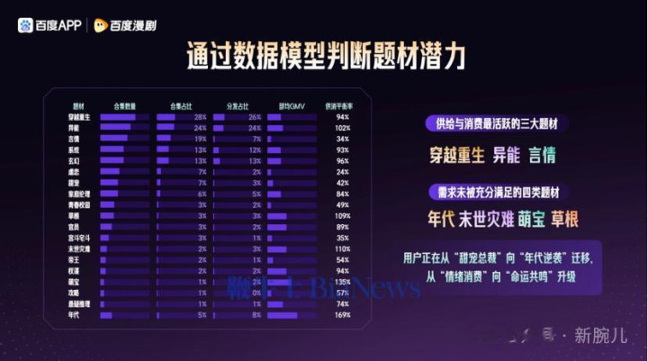 ⽽年代、萌宝、季世悲凉、草根等题材,需求未被充分满⾜,恰是互异化布局的契机点。